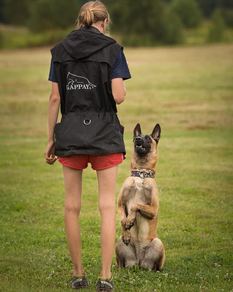 - Rozwijamy umiejętności w posłuszeństwie zaawansowanym – np.zatrzymywanie psa na dystansie, dostawianie do nogi, chodzenie przy nodze, pozycje w marszu, wysyłanie, obieganie, aportowanie, praca z odłożoną nagrodą, odsyłanie na legowisko i umiejętność pozostania na nim w rozproszeniach,